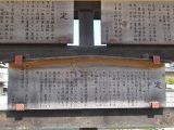 手前から同モニュメント、同高札、その右には東屋が在ります。モニュメントは駕篭の形をしています。