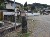 45)読めない石碑と御草紙掛松(おんそうしかけのまつ)説明板高札、御草紙掛松(四代目):高札の先、道路西奥