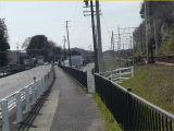 国道1号線右側歩道(旧道)の右側のフェンスに、スリットが開いてます。此処から抜けて、坂を下ります。
