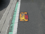 旧道の左側に、狐と纏が描かれたカラフルな消火栓が有ります。