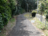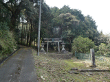 舗装路の右手に村社八王子神社社碑(写真右手前)と石鳥居が見えて来ます。此処からガイドは左手の自動車道ではなく、右手の石段へと向かいます。