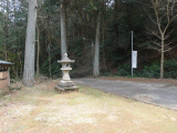 拝殿の左側には舗装路/自動車道が在り、その左手前に石灯籠が一基置かれています。帰りは危険な石段ではなく、この車道を利用しました。
