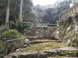 突当り正面に水盥(たらい、手水?)が置かれており、左手に小さな石灯籠も在ります。参道は此処で右に折れ、石段を昇ると八王子神社の境内です。石段上の一対の石灯籠のかたわれも、写真からは窺えます。