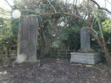 42)二つの大きな石碑:高札の奥、左奥、徒歩208分、道路南側