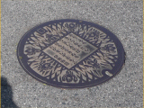 マンホールにはかきつばたの絵と、からころも きつつなれにし つましあれば はるばるきぬる たびをしぞおもふ 伊勢物語、とあります。伊勢物語は作者不明ですが、在原業平の歌物語をまとめています。