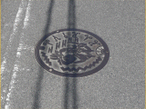 車道に、かきつばたの花が描かれたおすいマンホールが有ります。