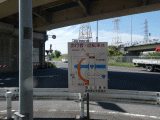 伊勢湾岸道の手前に、変形十字路交差点が在ります。此処を右折して、国道1号線に合流します。