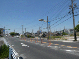 同交差点で右折して横断歩道を渡り、次いで右側歩道を少し池鯉鮒宿側に戻ります。写真右側には、右入路が少し見えています。
