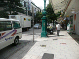 48)街路灯/右側歩道:右折すると商店街で、右手、徒歩80分、道路北側