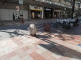 56)ベンチモニュメントその2/右側歩道:モニュメント1の先、右手、道路北側