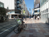 交差点左奥に道標が覗えます。左折すると商店街/七間町通りです。