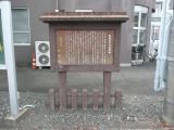 75)安倍川の川会所跡高札:旧道に戻り、(西見附を探して見付からず)先に進むと、右手、徒歩159分、道路西側
