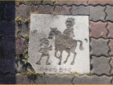 11)府中の宿散歩道タイル/右側歩道:タイルの先、右手、道路北側