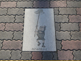 13)府中の宿散歩道タイル/右側歩道:消火栓の先、右手、道路北側