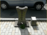 15)駿府鋳物師町(いもじちょう)標石と鋳物師町説明板/右側歩道:タイルの先、右手、同分、道路北側