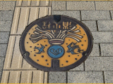中央に纏いと左右にツバメを配した、カラフルな消火栓が有ります。