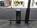 以前は上伝馬町本陣、脇本陣跡道標と立札だけでした。貫目改所跡道標は有りませんでした。立札は旧道の案内図で、図中には幕末頃の駿府伝馬町の街並も記されています。