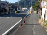 38)東海道丸子宿大型道標/ト字路交差点:看板の先に、徒歩254分、道路北側