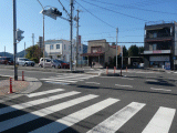 9)県道208号線横断地点/横断歩道:碑の先、右手、道路西側