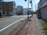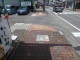 36)大慶寺←|タイル、参道、東海道日本遺産ペイント道標:街路灯からすぐ、左側歩道、徒歩69分、道路南側