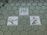 手前左から市のとり・うぐいす(Nightingale)、市の木・まつ(Pine)、市の花・ふじ(Wisteria)です。絵柄は先のカラー版とほぼ同じです。