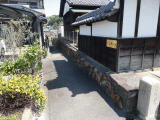 脇本陣跡の左側面(西側)には↑−本陣石垣看板が貼られており、同石垣が残存しています。山綱川沿いの藤川の地形を良く表しています。
