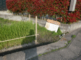 4)むらさき麦栽培地看板と同説明板:棒鼻の右奥、県道の右手、道路北奥
