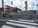 横断歩道で県道48号線を渡り、次いで左折します。交差点左奥は百味/中華料理店です。