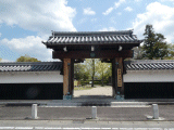 門の右手前には、岡崎観光きらり百選、大岡越前守陣屋跡看板が置かれています。また門の右側には、西大平藩陣屋跡の札が貼られています。