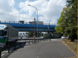 旧道は国道と合流した後、少し左にカーブします。目の前の高架は県道26号線です。これを横断歩道で渡ります。