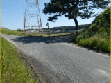 県道413号線を潜って来た道に突当ります。此処を左折します。写真左奥には松の木も窺えます。