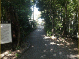 この写真からは大日堂の境内が見て取れます。同説明板の右側には巻いて上る坂道が、左側には上り階段が、その左後方には大日堂が控えています。説明文には、