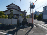86)秋葉灯籠と三本松石碑/十字路交差点:道標の先少し歩くと、交差点左奥、徒歩209分、道路南側