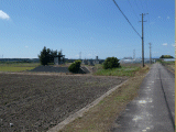 直進地点を右折し暫く行くと、左手田圃の中にお墓が見えて来ます。その手前に在ります。