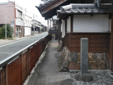 旧道沿いに、旅籠屋清明屋への順路が設けられています。順路右手には先の史跡二川宿本陣石碑、その先には本陣表門が在ります。