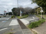 県道3号線の右手に、岩屋緑地に入る舗装路が有ります。交差点右奥には岩屋緑地ポールが、交差点右手前には、←東海道岩屋山古道、吉田宿(飯村町)に至る道標が置かれています。