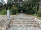 石段の左手に同道標が建っています。小渕は製糸家/女性実業家で、三河地方の玉糸製糸業の先覚者であり、豊橋市によって顕彰されています。