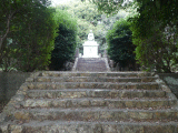 参道を進むと、石段の上に同ブロンズ像が鎮座しています。