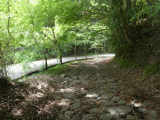 旧道の勾配は緩く石畳も歩き易いのですが、途中からは広葉樹の落葉だらけとなり、歩行には危険な状態に成りました。