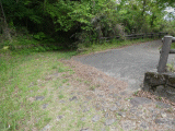 右側に舗装路が出現します。旧道(左側道路)は此処から先はかなり細く、舗装路の左奥を下ります。