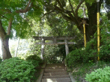 石段を登ると、石鳥居には山神社の額が飾られています。ガイドは此処で赤い斑点を持つ茶色い蛇に遭遇しました。