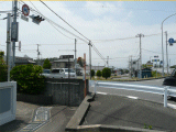 交差点左手前に、←旧東海道順路、見よう歩こう富士市の東海道、と書かれた茶色い案内板(道標)が有ります。歩行者は此処を左折して歩道を行きます。