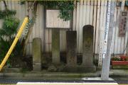 交差点東奥に、四基の金沢横町道標と同説明板。道標は右から順に、「円海山之道」「かなさわ、かまくら道」、「杉田道」、「豊岡山芋大明神社の道」。