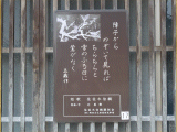 歌碑には、小枝(梅の木?)に止まる鶯が描かれています。「障子からのぞいて見ればちらちらと 雪のふる日に鶯がなく、五歳作」、とあります。
