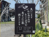 歌碑には筆と硯、二本の短冊が描かれています。「天にいますわが父のみはきこしめさむ 我がうたふ歌調ひくくとも」、とあります。