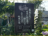 歌碑には、農家と庭木二本が描かれています。「蕎麦の花に百舌が訪ひ来て語らへり 山のはざまの秋風の家」、とあります。