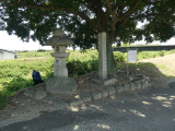 1)石灯籠、史蹟石薬師の一里塚趾石碑、石薬師の一里塚説明板:橋の袂左奥、徒歩111分、道路東側