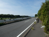 階段を昇り、次いでUターンし、国道1号線に復帰します。此処からは右側歩道を歩きますが、同歩道は草と立ち木で、かなり傷んでいます。