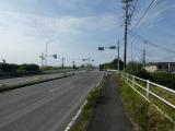 庄野宿へ行くには、同交差点を右折します。右折路には左側にしか歩道が無い為、交差点の横断歩道を渡り、次いで右折します。