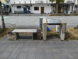 29)ベンチと城下町風街づくり計画説明板:プレートの先、右側歩道、徒歩43分、道路北奥